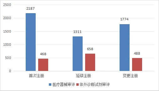 按注册品种区分,医疗器械注册申请10271项,体外诊断试剂注册申请3557项。