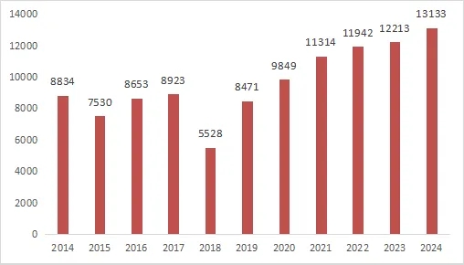 2024年,国家药监局共批准医疗器械首次注册、延续注册和变更注册13133项,与2023年相比注册批准总数量增长7.5%。